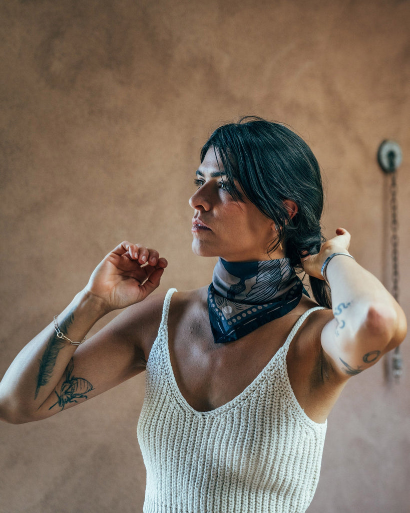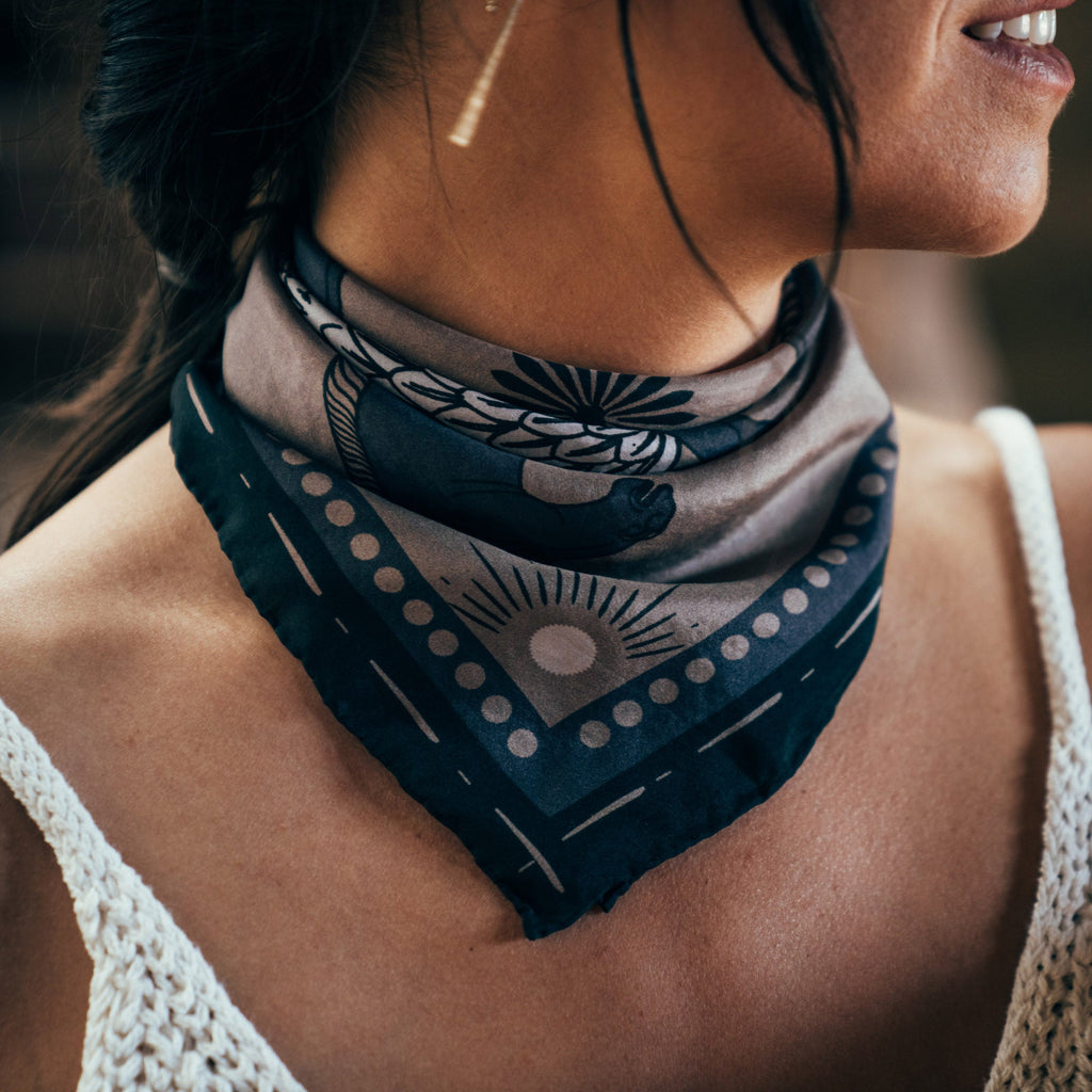 Bandanas are a classic and versatile wardrobe staple, wear them in your hair, on your bag, or around your neck. Made of the softest silk, they will add comfort and sophistication to any outfit you choose.