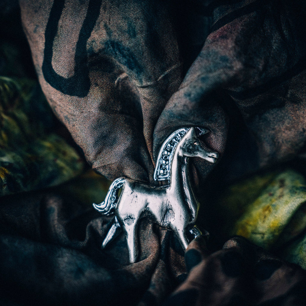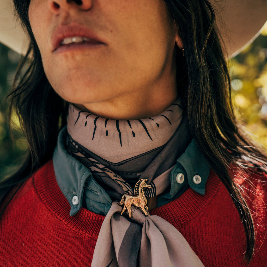 A delicate horse figurine inspired by depictions and sculptures of ancient Greece. The ideal gift for anyone who loves art and history of the antiquity. This slide pairs beautifully with our classic silk wild rags or bandanas.
