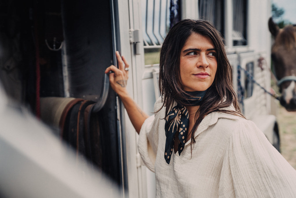 Inspired by the west and the equestrian lifestyle, our scarves meet the perfect balance of style and function. Made of the softest silk, they will add comfort and sophistication to any outfit you choose.