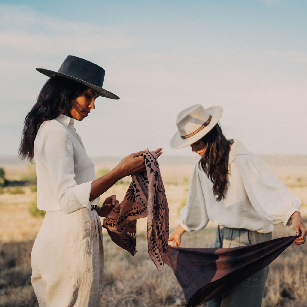 Inspired by the west and the equestrian lifestyle, our scarves meet the perfect balance of style and function. Made of the softest silk, they will add comfort and sophistication to any outfit you choose.